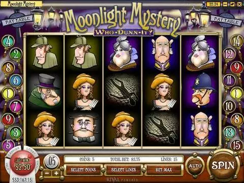 Moonlight Mystery is a 5 rouleaux / 15 lignes slot game, released by Rival in in Septembre 2009