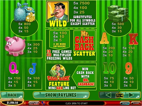 Mr. Cashback is a 5 rouleaux / 15 lignes slot game, released by PlayTech in n/a n/a