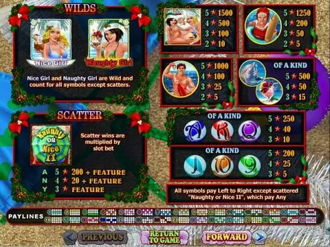 Naughty or Nice Spring Break is a 5 rouleaux / 30 lignes slot game, released by RTG in in Février 2014