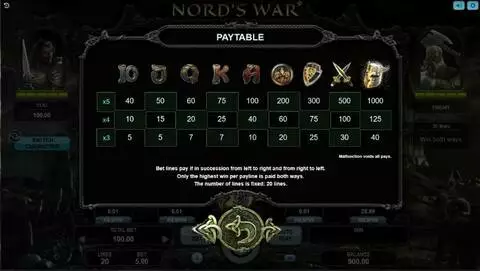 Nord's War is a 5 rouleaux / 20 lignes slot game, released by Booongo in in Février 2018
