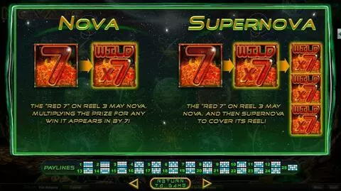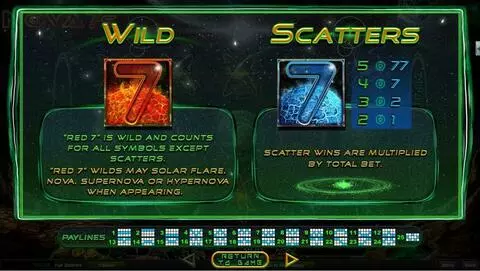 Nova 7's is a 5 rouleaux / 25 lignes slot game, released by RTG in in Septembre 2016