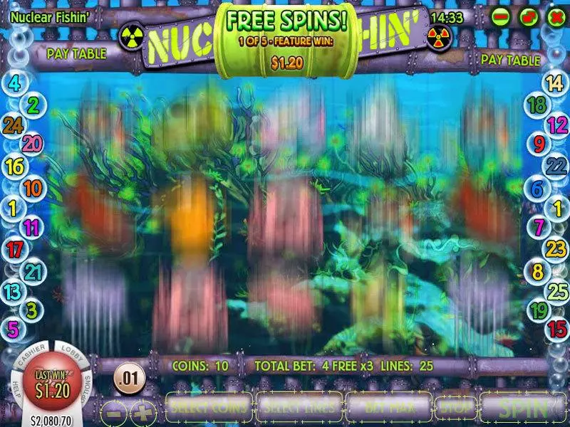 Nuclear Fishin is a 5 rouleaux / 25 lignes slot game, released by Rival in in Mars 2012