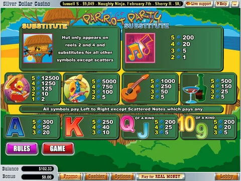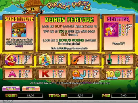Parrot Party is a 5 rouleaux / 25 lignes slot game, released by WGS Technology in in Mars 2009