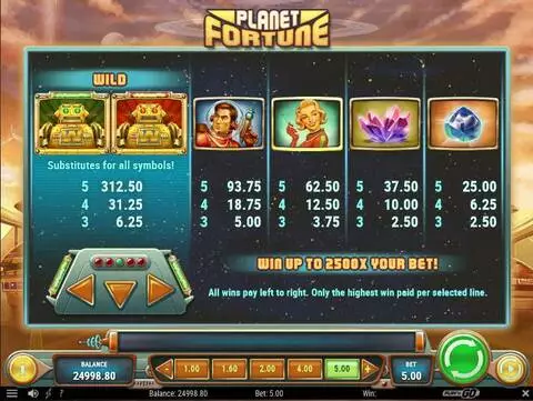 Planet Fortune is a 5 rouleaux / 40 lignes slot game, released by Play'n GO in in Mars 2018