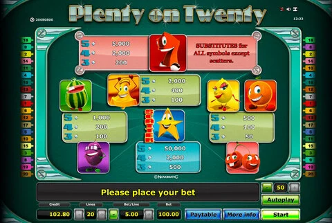 Plenty on Twenty is a 5 rouleaux / 20 lignes slot game, released by Novomatic in n/a n/a