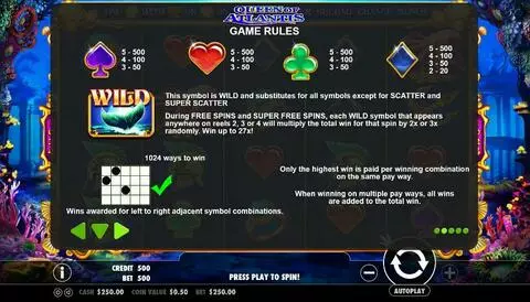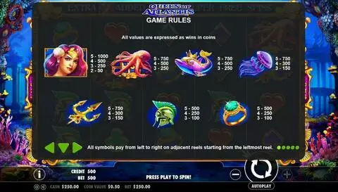 Queen of Atlantis is a 5 rouleaux / 1024 lignes slot game, released by Pragmatic Play in in Mars 2017