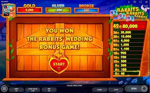 Rabbits, Rabbits, Rabbits! is a 5 rouleaux / 10 lignes slot game, released by Endorphina in in Mai 2023