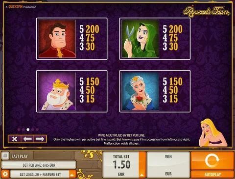 Rapunzel's Tower is a 5 rouleaux / 20 lignes slot game, released by Quickspin in n/a n/a