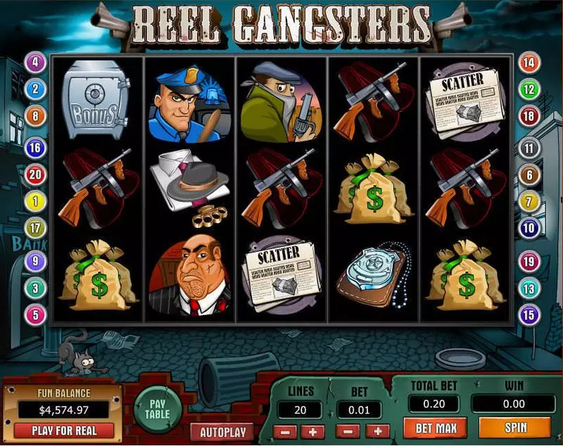 Reel Gangsters is a 5 rouleaux / 20 lignes slot game, released by Topgame in n/a n/a