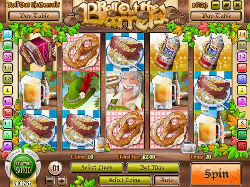 Roll Out the Barrels is a 5 rouleaux / 20 lignes slot game, released by Rival in in Octobre 2010