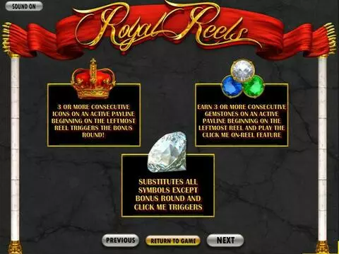 Royal Reels is a 5 rouleaux / 30 lignes slot game, released by BetSoft in n/a n/a