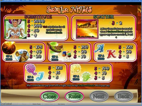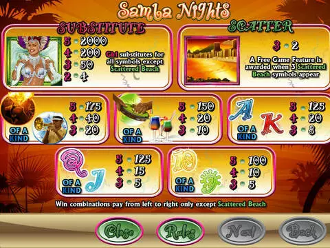 Samba is a 5 rouleaux / 25 lignes slot game, released by NuWorks in n/a n/a