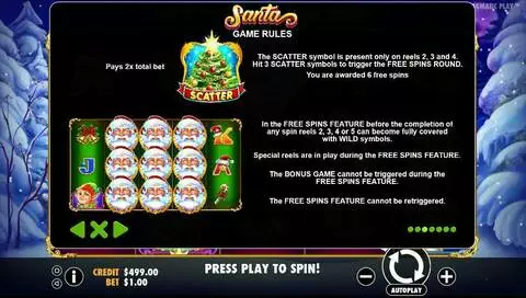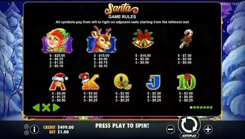 Santa is a 5 rouleaux / 20 lignes slot game, released by Pragmatic Play in in Novembre 2017