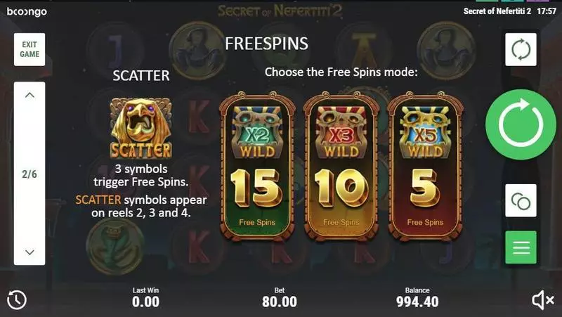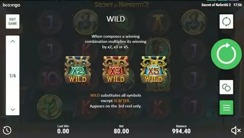 Secret of Nefertiti 2 is a 5 rouleaux / 40 lignes slot game, released by Booongo in in Avril 2018