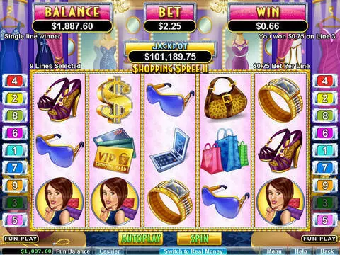 Shopping Spree 2 is a 5 rouleaux / 9 lignes slot game, released by RTG in in Novembre 2009
