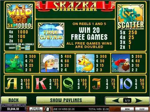 Skazka is a 5 rouleaux / 20 lignes slot game, released by PlayTech in n/a n/a
