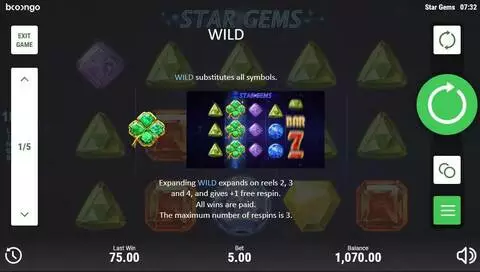 Star Gems is a 5 rouleaux / 10 lignes slot game, released by Booongo in in Juin 2018