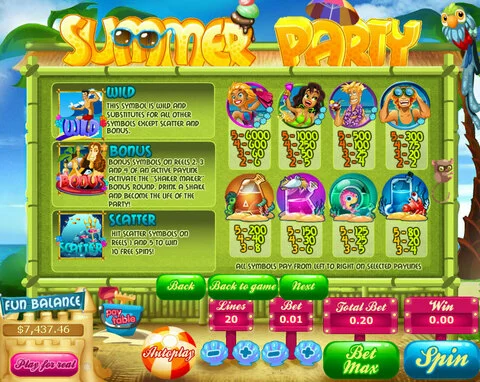 Summer Party is a 5 rouleaux / 20 lignes slot game, released by Topgame in n/a n/a