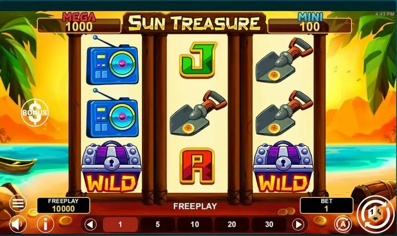 Sun Treasure is a 3 rouleaux / 27 lignes slot game, released by 1Spin4Win in in Avril 2024