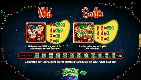 Swindle All The Way is a 5 rouleaux / 25 lignes slot game, released by RTG in in Décembre 2017