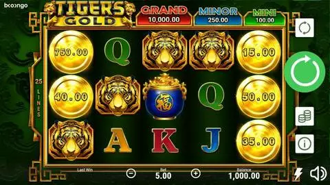 Tiger's Gold: Hold and Win is a 5 rouleaux / 25 lignes slot game, released by Booongo in in Janvier 2020