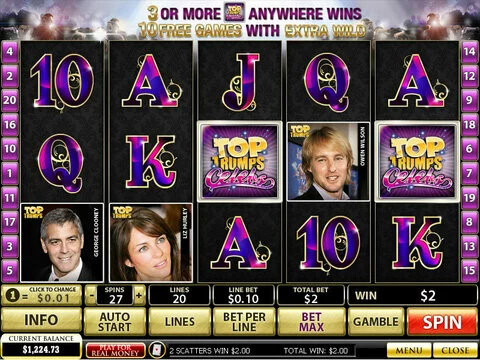 Top Trumps Celebs is a 5 rouleaux / 20 lignes slot game, released by PlayTech in n/a n/a