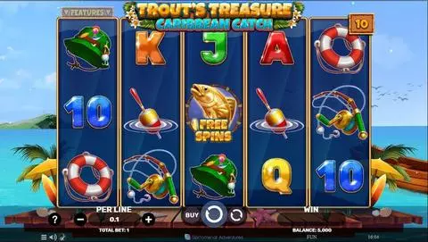 Trout’s Treasure – Caribbean Catch is a 5 rouleaux / 10 lignes slot game, released by Spinomenal in in Avril 2024
