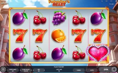 Valentine's Heart is a 5 rouleaux / 10 lignes slot game, released by Endorphina in in Février 2024
