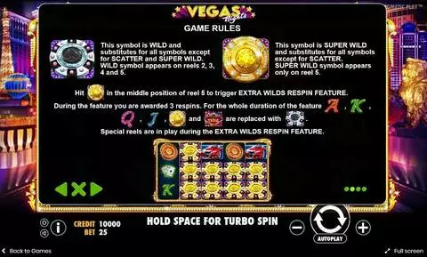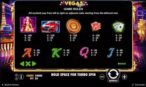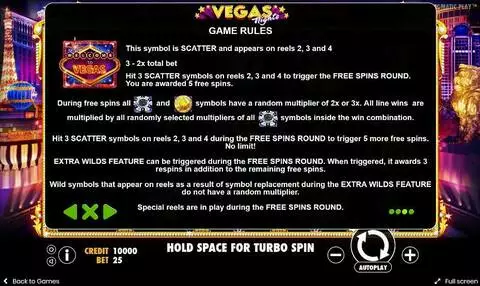 Vegas Nights is a 5 rouleaux / 25 lignes slot game, released by Pragmatic Play in in Septembre 2017