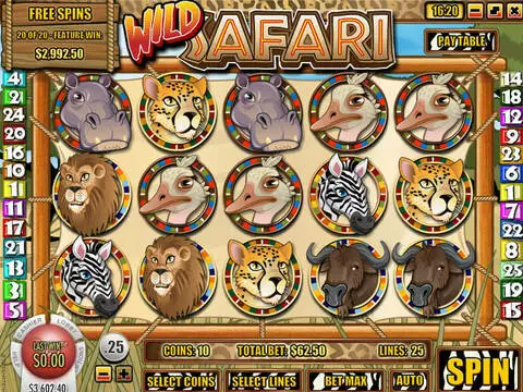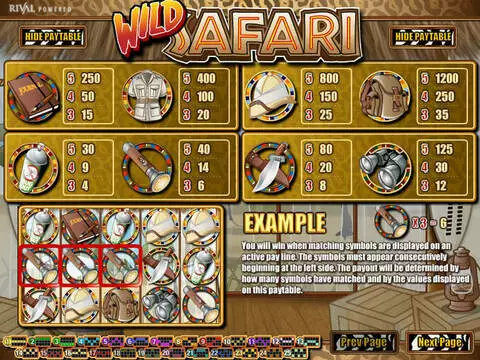 Wild Safari is a 5 rouleaux / 25 lignes slot game, released by Rival in in Mars 2012