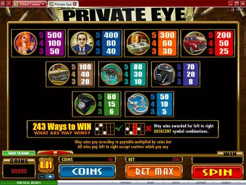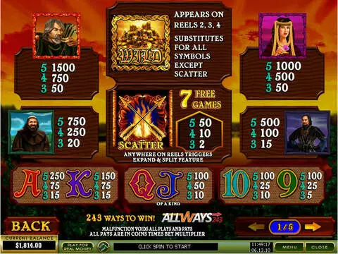 Type: Video, 243 façons de gagner, All Pays, All Ways Pays, No pay lines, Bonus Round
