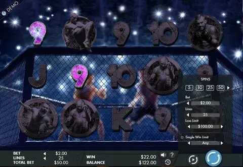 Reels / Lines: 5 rouleaux / 5 rouleaux Type: Features: 25 lignes Theme: Wrestling, Arena Fighting